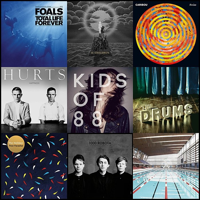1. Foals – Total Life Forever 2. O. Children – O. Children 3. Caribou – Swim 4. HURTS – Happiness 5. Kids of 88 - Sugarpills 6. The Drums – The Drums 7. The Holidays – Post Paradise 8. 1000 Robota - UFO 9. Good Shoes – No Hope, No Future 10. These New Puritans – Hidden 11. MIT - Nanonotes 12. Kisses – The Heart of the Nightlife 13. Warpaint – The Fool 14. Kiss Kiss Kiss – Release the Birds 15. Two Door Cinema Club – Tourist History 16. YOU ! – YOU ! 17. Motorama – Alps 18. Arcade Fire – The Suburbs 19. FM Belfast – How to make friends 20. Pomegranates – One of Us